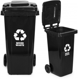 Κάδος Απορριμμάτων 120L Μαύρος Μικτών Απορριμμάτων με Λαστιχένιες Ρόδες