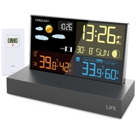 - Λευκές LED Ψηφιακές ενδείξεις (ώρα/ημερομηνία, θερμοκρασία, ποσοστό υγρασίας)